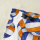 Cette serviette de plage motif de volleyballs dispose d'un motif aléatoire de taille variée, bleu, orange et blanc stylisé volleyballs tournés partout - son nom et numéro de maillot sont personnalisables - par katz_d_zynes