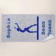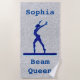 Filles Gymnastique Beam Queen Faux Parties scintillant Beach Towel - Argent & Bleu - Ajoutez simplement le nom de votre gymnaste !