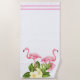 Cette serviette de plage est présentée dans un imprimé de flamants et de fleurs tropicales. Couleurs Stock blanc Image freepik.com