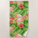 Motif de peint avec des feuilles de monstère aquarelle, fleurs d'hibiscus, fleurs de flamants et oiseaux