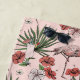 Cette plage de flamands roses tropicaux colorée ou serviette de piscine présente un motif floral de flamants roses dessinés à la main, de fleurs d'hibiscus et de jasmin, d'ananas, de feuilles de bananes et de boissons tropicales, le tout contre un élégant arrière - plan rose vif. Personnalisez avec le titre et le nom.