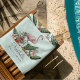 Serviette De Plage Flamant rose rose tropical Motif floral Turquoise