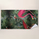 Deux flamants roses sur un arrière - plan de feuilles monstères