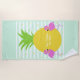 Serviette De Plage Flamants roses d'ananas texte personnalisé