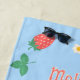 Une douce serviette de plage mignonne qui dispose d'un motif délicieux et ludique de petites fraises éparpillées sur arrière - plan bleu. Les fraises sont rendues dans un rouge vif avec des feuilles verts, et elles sont entrecoupées de petites fleurs de fraises blanches ou jaunes clairs, ce qui ajoute au charme. L'ensemble est gai, frais et sucré, idéal pour les enfants.