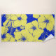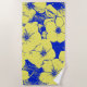Sentez-vous sur une île tropicale avec cette serviette de plage conçue avec de grandes fleurs d'hibiscus jaune abstrait contre un arrière - plan bleu cobalt clair