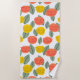 Cette serviette de plage au design scandinave de fleurs et de feuilles éparpillés dans le corail, l'or et le vert sauge.