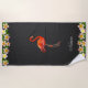 Serviette De Plage Fleurs Flamant rose et Plumeria sur presque noir