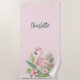Arrière - plan rose vif et féminin décoré d'un flamant rose, de fleurs tropicales et de feuillage. Personnaliser et ajouter un nom