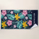 La Marine Tropicale Et Les Fleurs D'Hibiscus Roses Apportent Des Serviettes De Plage Florales. Personnalisez ce design personnalisé avec votre propre nom.
