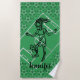Cool Soccer girl football design, avec un dessin en ligne d'une joueuse de football avec football sur un terrain de football vert avec arrière - plan de football vert et gris. Ce design peut être personnalisé en ajoutant votre nom via le bouton personnalisé. Fait un grand cadeau à n'importe quelle joueuse de football ou future star de football féminin