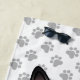 Illustration originale de Destei d'une jolie fumée / couleur gris foncé chat égyptien de race Mau. L'arrière - plan a un motif d'empreintes de pattes de chat gris.