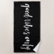 Trempez les rayons...et de bonnes vibes. La serviette de plage, mignonne et épicée, comprend des "bonnes vibes seulement" en blanc à la brosse manuscrite sur un riche arrière - plan noir.