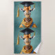 Dans une scène festive et chaleureuse, une girafe se dresse fièrement, portant un bonnet de graduation noir et élégant perché sur la tête, Le casquette est assis juste au-dessus de ses yeux expressifs, et son long cou s'étire comme s'il se reposait au moment de l'accomplissement. Une volée de graduation qui s'envole gracieusement autour de ses épaules, ajoutant une touche de formalité. L’attitude de la girafe rayonne de fierté et de joie, en capturant l’essence d’une célébration unique et inoubliable.