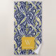 Serviette De Plage Gras bleu jaune Abstrait Ikat Monogramme