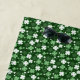 A whimsical shamrock print on a dark green background.