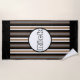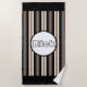 Cette serviette de plage spacieuse présente un design géométrique et graphique amusant, avec des rayures grises, brunes et noires.Le haut et le bas sont recouverts d'une bordure noire épaisse. Le cercle blanc avec garniture noire a de la place pour votre nom.