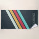 Design contemporain coloré en diagonale vert-blanc, bleu turquoise clair aqua vert, rouge corail et rayures jaune ensoleillé design motif sur un arrière - plan vert-gris. Avec l'option de customiser ou de personnaliser avec le monogramme ou les initiales de votre choix. Belle serviette de plage moderne et cool pour la tendance branchée et amateur d'art branché, style rétro vintage motif amoureux