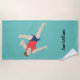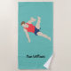 Serviette de plage à thème de gymnaste masculin avec texte personnalisable.