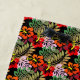 Appréciez votre look de plage avec cette serviette de plage fleurie hibiscus. Cette serviette noire présente un couvert de fleurs d'hibiscus rouge et orange avec des feuilles verts contrastés. Utilisez cette serviette pour la plage, en plein air dans votre espace de vie, la piscine et le lac.