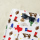 Cette serviette contient toutes vos icônes Texas préférées ; des casquettes de cowboy, des bottes, des cactus, des guitares, des bleuets, des footballs, des lounghorns, et bien sûr, le drapeau du Texas !