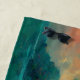 Il s'agit d'une vue sur l'imaginaire tropical d'aquarelle aux tons turquoise et orange, représentant le ciel, les nuages, la mer, les palmiers au lever du soleil.