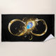 Or, symbole brillant de l'infini, décoré de bijoux plumes paon avec turquoise sur arrière - plan noir.
