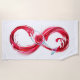 Infinity symbole of continuous stream of red pouring into glass glass glass on white background.