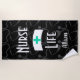 Conçu avec noir personnalisable arrière - plan superposé avec stéthoscope silhouettes motif. Casquette mignon d'infirmière avec croix médicale turquoise et "vie d'infirmière" dans la typographie blanche et audacieuse centrée autour du casquette. Nom personnalisé sur la partie inférieure de la serviette.