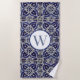 Serviette De Plage Italien Azulejo Bleu Blanc Géométrique Monogramme