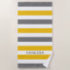 Serviettes de plage rayées avec grand motif rayé jaune, gris et blanc. Les serviettes à rayures nautiques sont parfaites pour votre journée à la plage.Personnalisez avec votre nom ou monogramme pour un look unique.