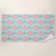 Une serviette de plage avec un lapin blanc géant tenant un gros ballon rose flottant dans l'air. Placez-vous sur un arrière - plan bleu-vert clair.