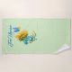 Montrez votre soutien au peuple d'Ukraine avec cette jolie serviette de plage avec du tournesol aquarelle et un papillon aux couleurs du drapeau d'Ukraine sur un pastel vert et blanc pois arrière - plan. Libérez le texte de l'Ukraine dans une police de script élégante