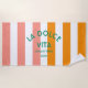 La serviette de plage Cinque Terra est parfaite pour votre escapade... rayures de cabane orange et rose avec lettrage vert mer "La Dolce Vita". Personnalisez avec les détails de vos vacances ensoleillées... année et destination. Idéal pour un voyage à la plage en famille ou entre amis ou pour une bachelorette de destination ou comme souvenir pour un voyage passé. Accessoires correspondants disponibles dans la collection La Dolce Vita Cinque Terra Cabana Stripe.