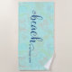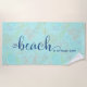 Serviette de plage avec "The Beach is My Happy Place" dans un style typographique moderne avec subtil arrière - plan de tortue, de poisson etc.