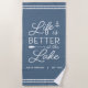 Améliorez votre installation à l'extérieur de votre résidence au bord du lac avec cette mignonne serviette de plage personnalisée avec l'expression "la vie est meilleure au lac" en lettres blanches accentuées avec une ancre et un poil. Personnalisez avec votre nom de famille et/ou l'année établie en dessous. Idéal pour les fêtes de la maison de lac, les maisons d'été ou les locations de vacances.
