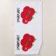 Le mignon amour cultive le serviette de plage de tomates rouges. Cette conception originale et simple a été créée avec des cercles, des lignes, des nuances de noir, de vert et de rouge et divers éléments de texte de police (parenthèses, points et astérisques).