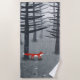 Un renard rouge sauvage se dresse au milieu des arbres dans une forêt sombre. Une peinture paysagère pour les amoureux des animaux, de la nature et de la faune.