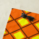 Cette serviette de plage a une conception des années 1970 de diamants jaunes solides à l'intérieur des contours de diamants bruns sur un champ d'orange.