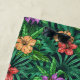 Une Belle Serviette De Plage Pour La Baignade Conçue Avec Des Feuilles Tropicaux Verdoyants Et Des Fleurs Hibiscus Colorées.