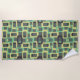 Cette serviette de plage au design moderne du milieu du siècle de rectangles arrondis avec ovales à l'intérieur dans des tons rétro de gris foncé, jaune pâle, et de la mer sur un champ de gris clair. Si vous voulez le même design avec des couleurs différentes, envoyez-moi un message.
