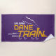 Le logo de l'UAlbany Dane Train présente une typographie angulaire audacieuse avec les mots "Dane Train" en grandes lettres majuscules violettes. Au-dessus, "UAlbany" est écrit dans une police plus petite et dorée. La conception incorpore la silhouette d'un train, avec la fumée qui s'écoule de la cheminée. Les roues du train sont représentées en or, donnant l'apparence du mouvement, et les rayures dorées à gauche accentuent la vitesse et l'élan. Le logo dégage une ambiance dynamique et énergique, combinant des éléments de force et de mouvement, reflétant un esprit sportif ou d'équipe.