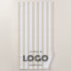 Ajoutez votre propre image de logo commercial de forme rectangulaire moderne en noir ou coloré pour créer des serviettes de plage rayées de style perle beige et blanc classique. Vous pouvez déplacer les modèles de texte si vous avez un carré ou un autre logo de forme. Customisez le style, la taille et la couleur de la police pour répondre à vos besoins professionnels. Changez la couleur jaune doré de l'arrière - plan selon les besoins pour correspondre aux couleurs de votre petit hôtel.