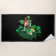Fée irlandaise aux cheveux roux tout en vert pour la Saint-Patricks Day avec sa casserole d'or et de trèfle vert.
