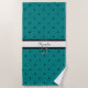 Réservez votre place au soleil avec une serviette qui définit le luxe au bord de la piscine. Enveloppez-vous de l'énergie vibrante de l'été avec cette serviette de luxe moderne sarcelle et noire à pois. Cette serviette surdimensionnée et moelleuse présente une bande centrale frappante pour votre nom personnalisé, garantissant que votre installation de plage est aussi unique que votre itinéraire. Que vous vous prélassiez au bord de la Méditerranée ou au club local, cette serviette apporte une touche d'élégance de boutique à votre après-midi. L'ambiance estivale ultime - personnalisée, chic et prête pour l'eau.