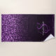 Serviette de plage élégante noire et violette à paillettes avec monogramme et votre nom personnalisé dans un script féminin, tendance et élégant.