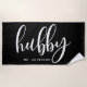 Montrez votre statut de jeune marié avec cette serviette de plage élégante "Hubby" en noir et blanc, parfaite pour les lunes de miel, les jours de plage ou la relaxation au bord de la piscine. Conçue pour les jeunes mariés et les maris, cette serviette peut être personnalisée avec un nom de famille, ce qui en fait un cadeau attentionné ou un accessoire élégant. Que ce soit pour la plage ou la piscine, c'est une façon chic de célébrer votre amour.