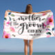 Serviette de plage personnalisée pour la mère du marié. Cette serviette élégante est parfaite pour la mère de la mariée ou du marié. Elle peut être personnalisée avec le nom de votre choix. Un moyen parfait de se souvenir de votre jour spécial.
