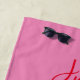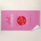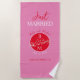 Contemporain, moderne, vibrant serviette de plage de mariage rouge et rose cadeau pour jeunes mariés avec monogramme - initiales, noms, date, lieu, unique dessin d'oiseaux de couple d'amour romantique et écriture calligraphique manuscrite tendance. Tout juste mariés !