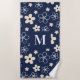 Serviette De Plage Marine bleu crème fleur motif rétro
